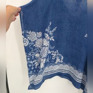 Chicos 100% Linen Floral 2-Way Poncho Top Flowy Boho Blouse Coastal Beach