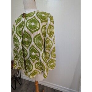 Chico’s 100% Linen Jacket Ikat Print 3/4 Sleeve Single Button Size 1 M / 8-10