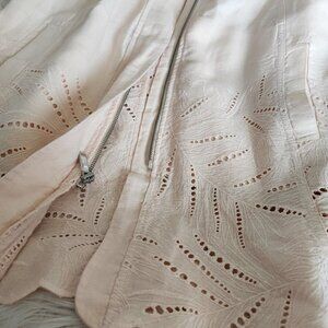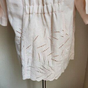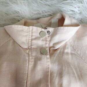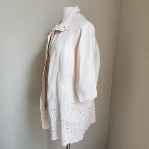 Chico’s 100% Linen Jacket Women’s Zip Long Size 2 M 12 Eyelet Cutouts ligjt baby Pink.