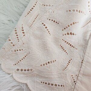 Chico’s 100% Linen Jacket Women’s Zip Long Size 2 M 12 Eyelet Cutouts Pink