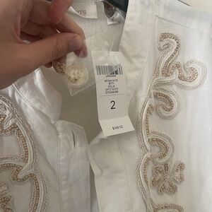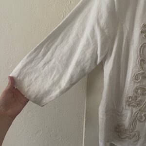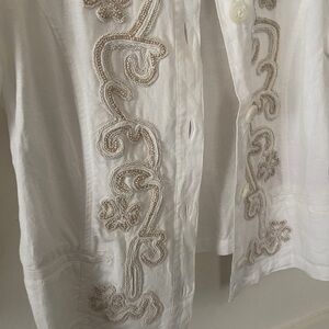 Elegant white top with intricate embroidery, perfect for any occasion. Crafted by Chico's for a stylish and comfortable fit.
