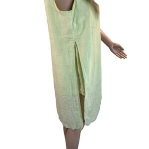 Chico's 100% Linen Mini Shift Dress Button Down Sleeveless Pockets Size Medium