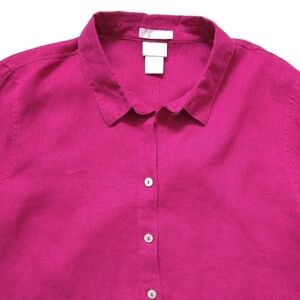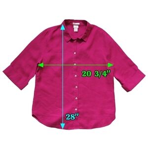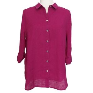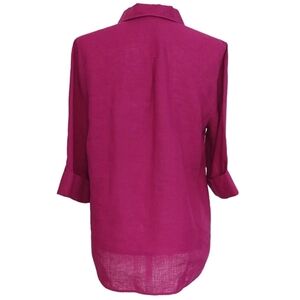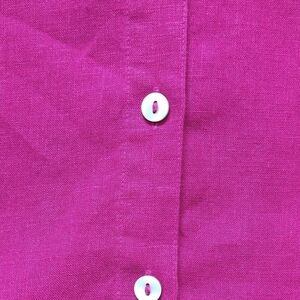 Good used condition, with no stains or tears. A bold, dark pink button-up shirt, with 3/4 sleeves. Wrinkle resistant. Comfortable and breathable as it is pure linen.
