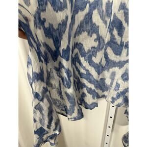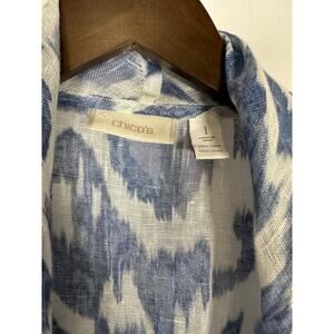 Chico's 100% Linen Open Front Cardigan Blue White Beachy Resortwear 1 US Sz M