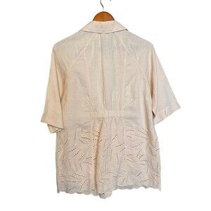 Chico’s 100% Linen Peach Eyelet Lace Zip Up Lightweight Tunic Size 1P Medium Top