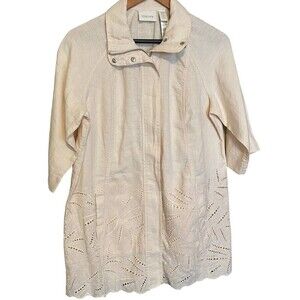 Chicos 100% Linen Peach Eyelet Lace Zip Up Lightweight Top Size 1P Medium