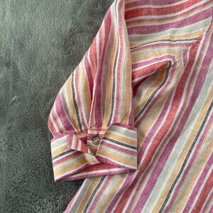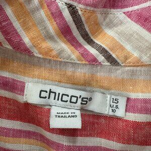 Chico's 100% Linen Striped Button Up Blouse Shirt Women's 1.5 US 10