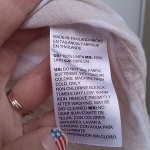 Chico's 100% Linen Tan White Striped FreshChic Non Iron Button Up Size 2 12/14 L