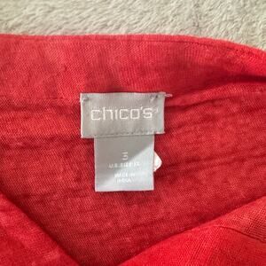 Chico's 100% Linen V Neck Long Sleeve Women's Tunic Top 3 US XL Coral Boho