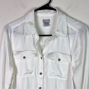 Chicos 100% Modal Shirt White Size 0 (4/6) Pockets Smooth Lightweight Soft