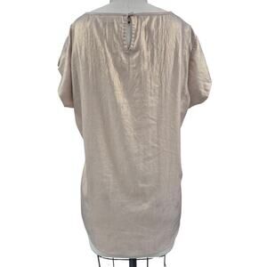Chico's 100% Polyester Metalic Gold Top peekaboo with the button on back rounded bottom Chicos Sz 2( L/XL) NWOT