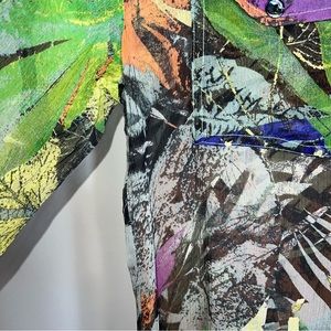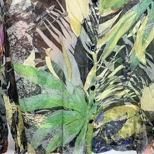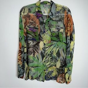 Chico's 100% Silk Button Front Blouse-Multicolor-Long Roll Tab Sleeves-Small