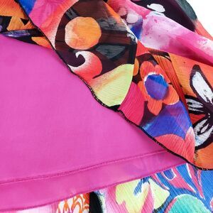Chicos 100% Silk Midi Skirt Womens XL Wearable Art Flowy Maximalist Boho Resort