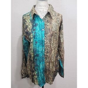 Chico's 100% Silk Multi Color Unique Design Button Up Collared Blouse | Size 2