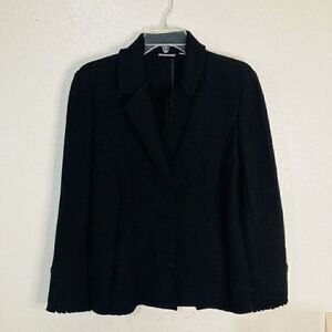 Chico's 100% Wool Coat Black Snap Collar Long Sleeve Jacket Women Size 0 (S/4)