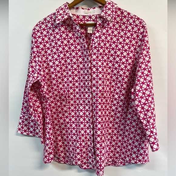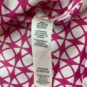 Chicos 100% cotton hot pink and white button down. So bright and light weight.