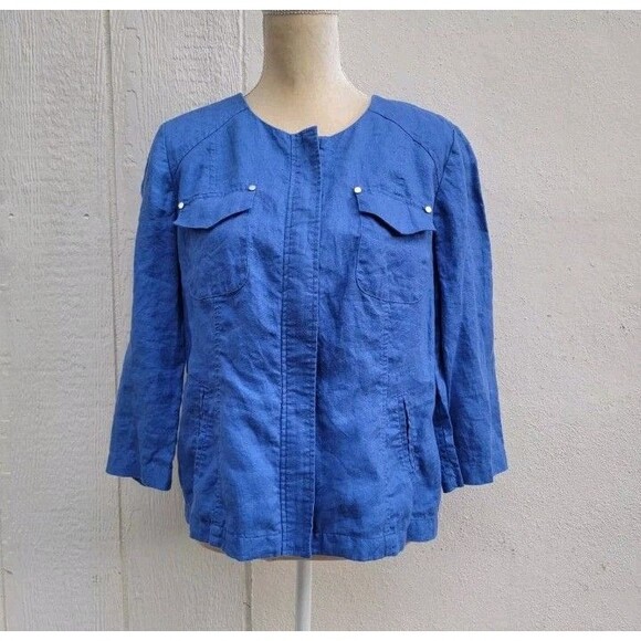 Chico's 100% linen blue zip front jacket wmns sz Med (1)