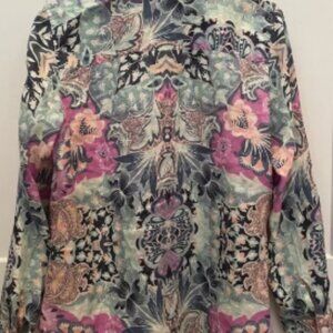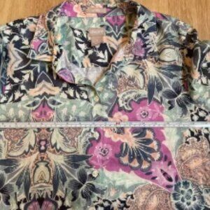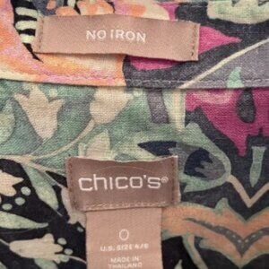 Chico’s 100% linen size 0 (US size 4) floral button down shirt no-iron blouse