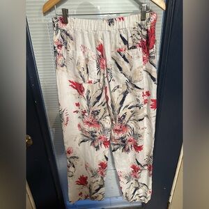 Chicos 100% linen size 1 white with pink blue floral straight leg summer pant