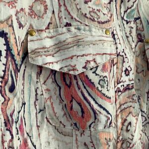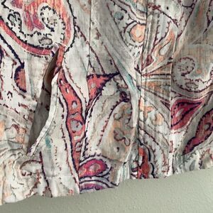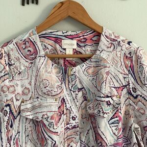 Chicos 100% linen paisley printed zip up shacket blouse in vanity size 1