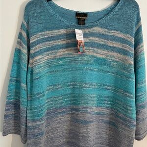 Chico’s 1X Striped Sweater Blue Gray NWT 3/4 Sleeve Lightweight Knit