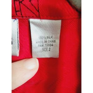 Chico's 2 100% Silk Red Black Long Slv Button-up Large Shirt Stick Figures Print