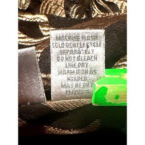 This silk-blend showpiece hits that rare, sweet spot where texture, pattern, and sheerness collide like a fashion plot twist that refuses to play subtle. The black base floats under a metallic gold and bronze floral jacquard that gives “gallery-opening energy” even on a Tuesday.