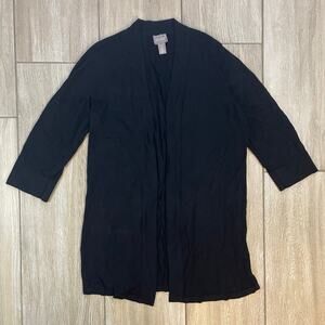 Chico’s 2 Black Open Front Long Sleeve Lightweight Rayon Cardigan Jacket Duster
