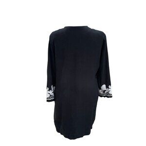 Chicos 2 Black White Linen Embroidered Tunic Jacket Boho Resort Festival Travel
