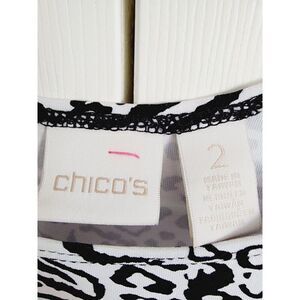 Chico's 2 Black White Pullover Tank Top Animal Print Stretch Wide Straps