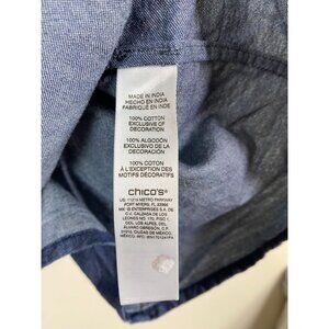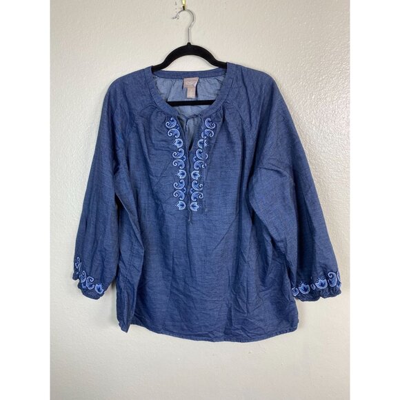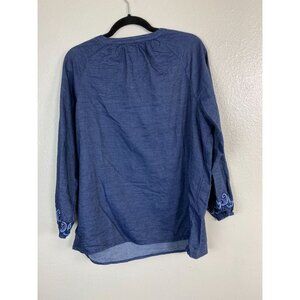 Chicos 2 Blue Embroidered Long Sleeve Tunic Boho Top Blouse Size Large Peasant