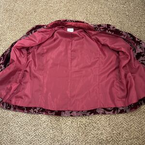 Chico's 2 Burgundy Velour Shimmer Filigree Button Blazer Pockets Lined Christmas