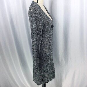 Chicos 2 Duster Cardigan Sweater Womens Size Large 12 Black Long Open Crochet