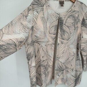 Chico's 2 Easywear womens knit Cardigan Jacket pink gray Crinkle size large