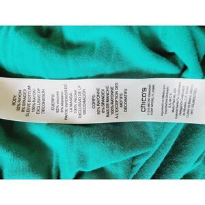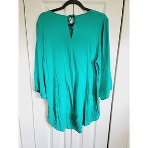 Chico's 2 Green Back Keyhole & Rear Tie Top Size Large LS Round Neck Tunic