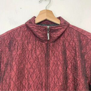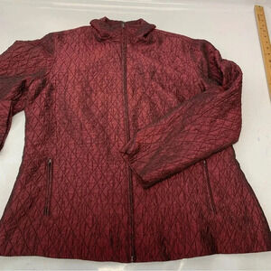 Chicos 2 Jacket Woman US Large Maroon Full Zip Textured Lightweight Pockets