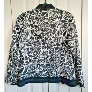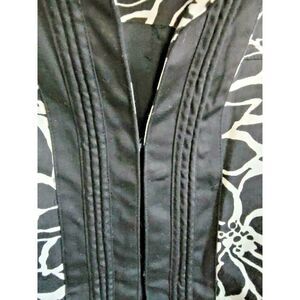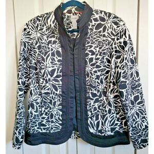 Chico's 2 Large Black/White Embroidered Jacket Slimming Hook Closure~Pockets.