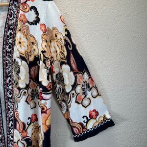 Chicos 2 Linen Blend Floral Fringe Long Cardigan Women's US L Lagenlook Boho Beach Party Casual Work