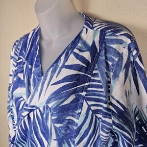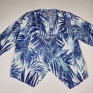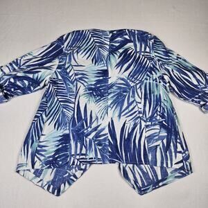 Chicos 2 Linen Open Blazer Jacket Roll Tab Sleeve White Blue Tropical Womens L