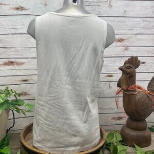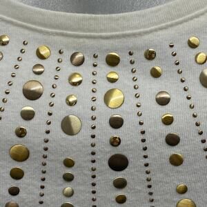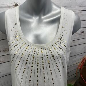 Chicos 2 Medium White Embellished Tank Top Sunburst Sleeveless Shirt Gold Detail