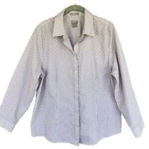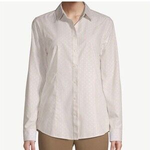 Chico’s 2 No Iron Button Shirt Womens L 12/14 White Cream Stripe Coolmax Preppy