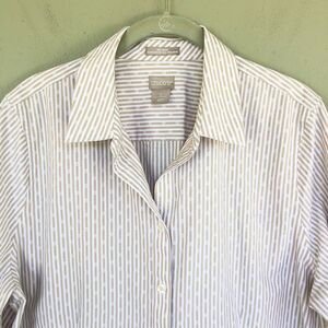 * Chicos 2 No Iron Button Shirt Womens L 12/14 White Cream Stripe Coolmax Preppy
