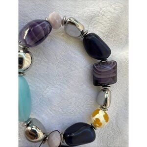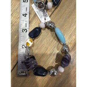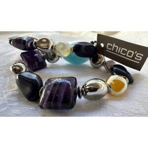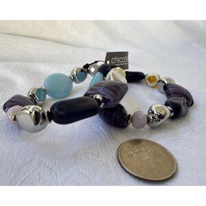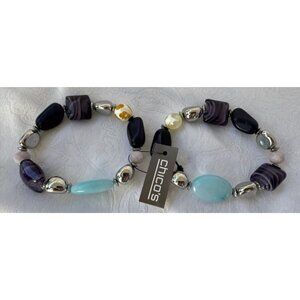 Chico's 2 PC Turquoise Blue Purple Silvertone Stretch Stackable Bracelet - NWT