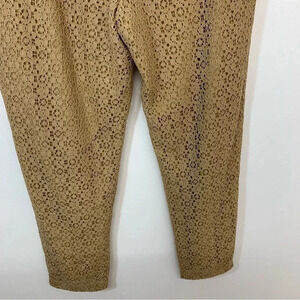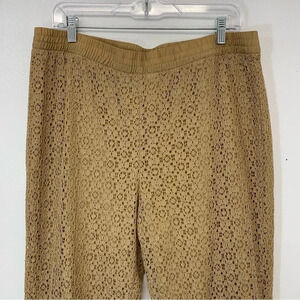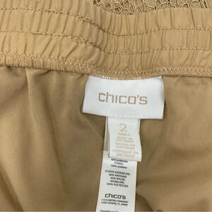 Chicos 2 Pants Lace Pull On Large Ankle Brown Lined Tapered Elastic Classic