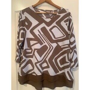 Chicos 2 Soft 12-14 Tunic Womens Geometric Assymetric 3/4 Sleeve Plus Size