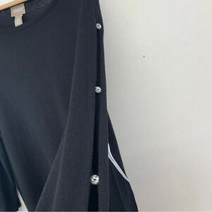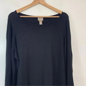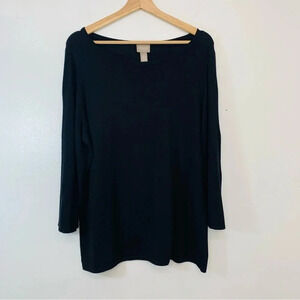 Chicos 2 Sweater Woman US Large Black Pull Over Nylon Cashmere 3/4 Sleeve NEW