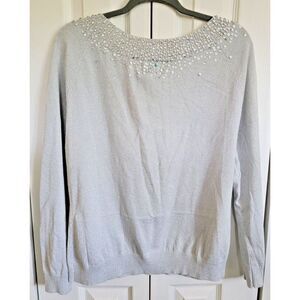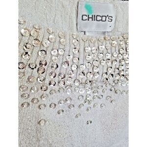Chico's 2 Sweater Silver Pullover Lightweight Metallic Beaded Stretch Long Slv.