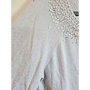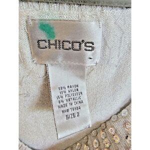 Chico's 2 Sweater Silver Pullover Lightweight Metallic Beaded Stretch Long Slv