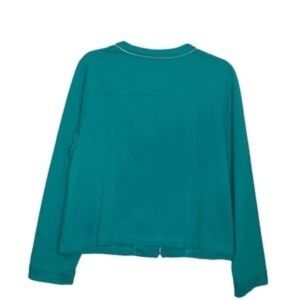 Chico’s 2 - Teal Cotton Blend Knit Zip Front Jacket w Silver Zipper Trim Size 12