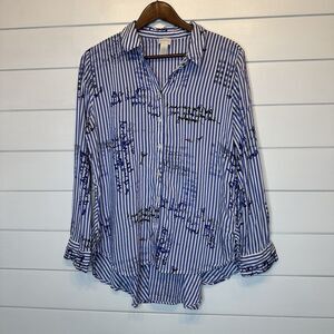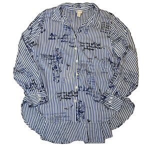 Chicos 2 Top Button Front Blouse Blue White Stripe Large 12 Martini Shoes Hi Low